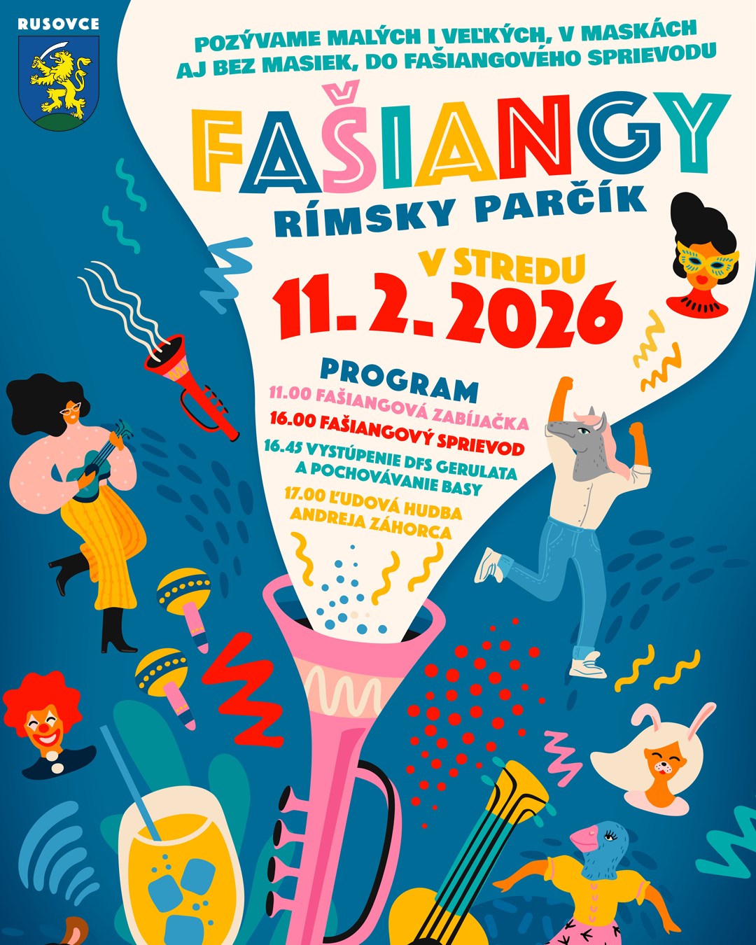 Pozývame vás do fašiangového sprievodu v stredu 11. 2. 2026. Tešiť sa môžete na tradičné vystúpenie a pochovávanie basy v podaní DFS Gerulata či fašiangovú zabíjačku, ktoré sa uskutočnia v Rímskom parčíku. Do tanca nám zahrá Ľudová hudba Andreja Zahorca. S maskami alebo bez nich – príďte medzi nás!