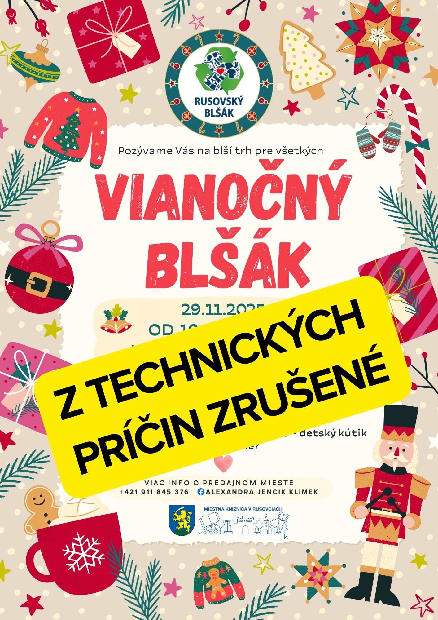 Oznamujeme vám, že Vianočný blšák je z technických príčin zrušený. Ďakujeme za pochopenie.
