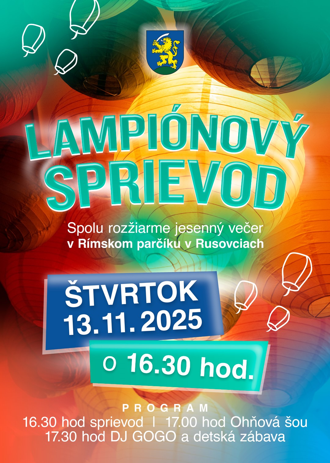 Pozývame všetky deti, rodičov aj starých rodičov na Lampiónový sprievod, ktorý sa uskutoční 13. 11. 2025 o 16:30. Stretneme sa v Rímskom parčíku. Pridajte sa k nám s lampiónmi a dobrou náladou a užime si spolu príjemný jesenný večer plný svetielok a atmosféry. Tešíme sa na vás.