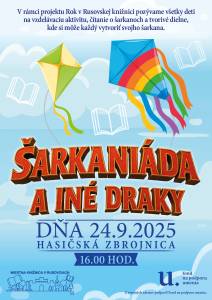 Pozývame vás dňa 24. 09. 2025 o 16 hod. do hasičskej zbrojnice na štvrté zo šiestich podujatí v rámci projektu "Rok v Rusovskej knižnici" – tentokrát s názvom "Šarkaniáda a iní draci".