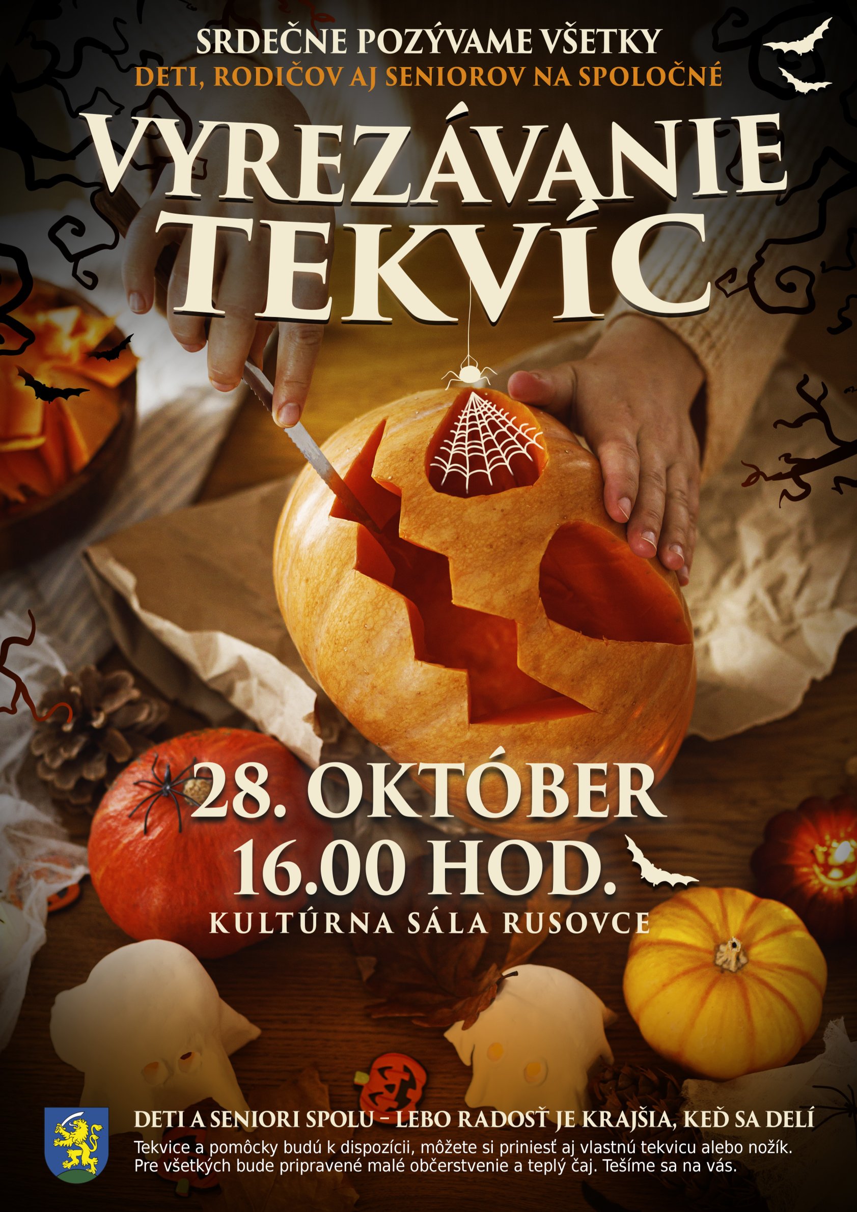 Srdečne vás pozývame na spoločné vyrezávanie tekvíc, ktoré sa uskutoční v utorok 28. 10. 2025 o 16:00 v kultúrnej sále miestneho úradu.