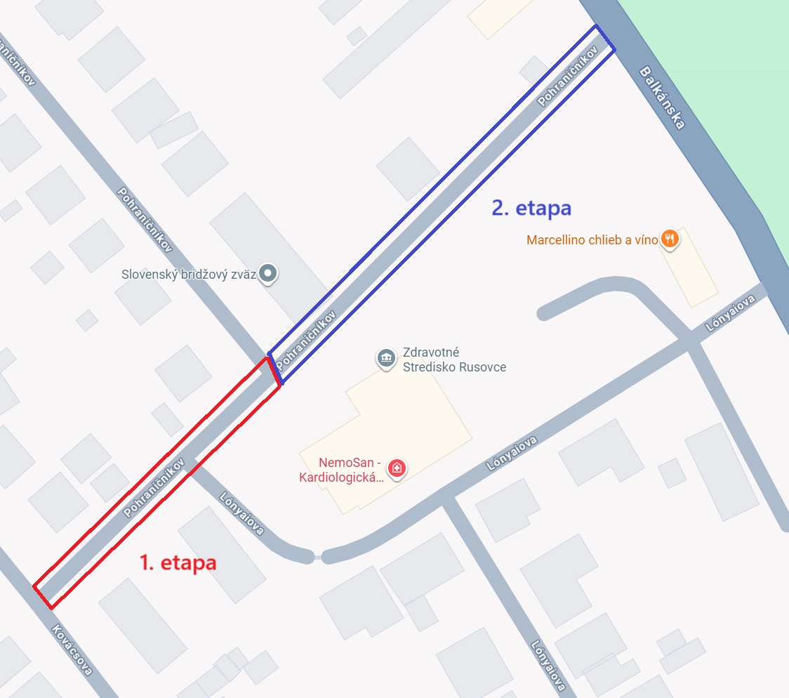 · ulica Pohraničníkov č. 1 – č. 38 bude počas tejto etapy dočasne slepou ulicou.